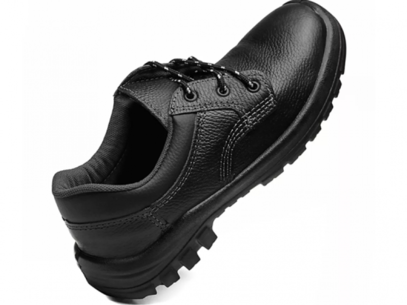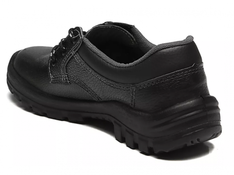 Calçado de segurança de uso profissional, tipo sapato, fechamento em amarrar, confeccionado em couro curtido ao cromo, palmilha de montagem em material sintético montada pelo sistema strobel, biqueira de composite, solado de poliuretano monodensidade com resistência ao escorregamento injetado diretamente no cabedal, com sistema de absorção de energia na região do salto, resistente ao óleo combustível.